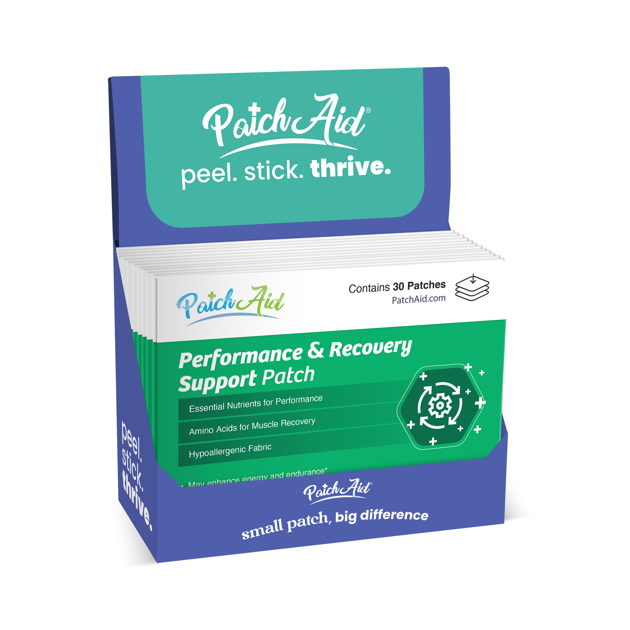 PatchAid Performance & Recovery Support Patch is expertly formulated to enhance energy, endurance, and muscle recovery using a powerful blend of vitamins, amino acids, and botanical extracts. Designed for athletes, fitness enthusiasts, and active individuals, this patch delivers targeted support to boost performance, reduce fatigue, and aid muscle repair—all without pills.